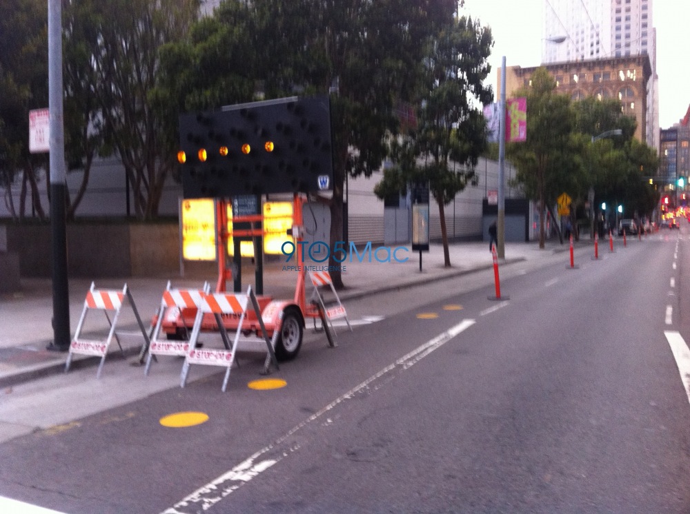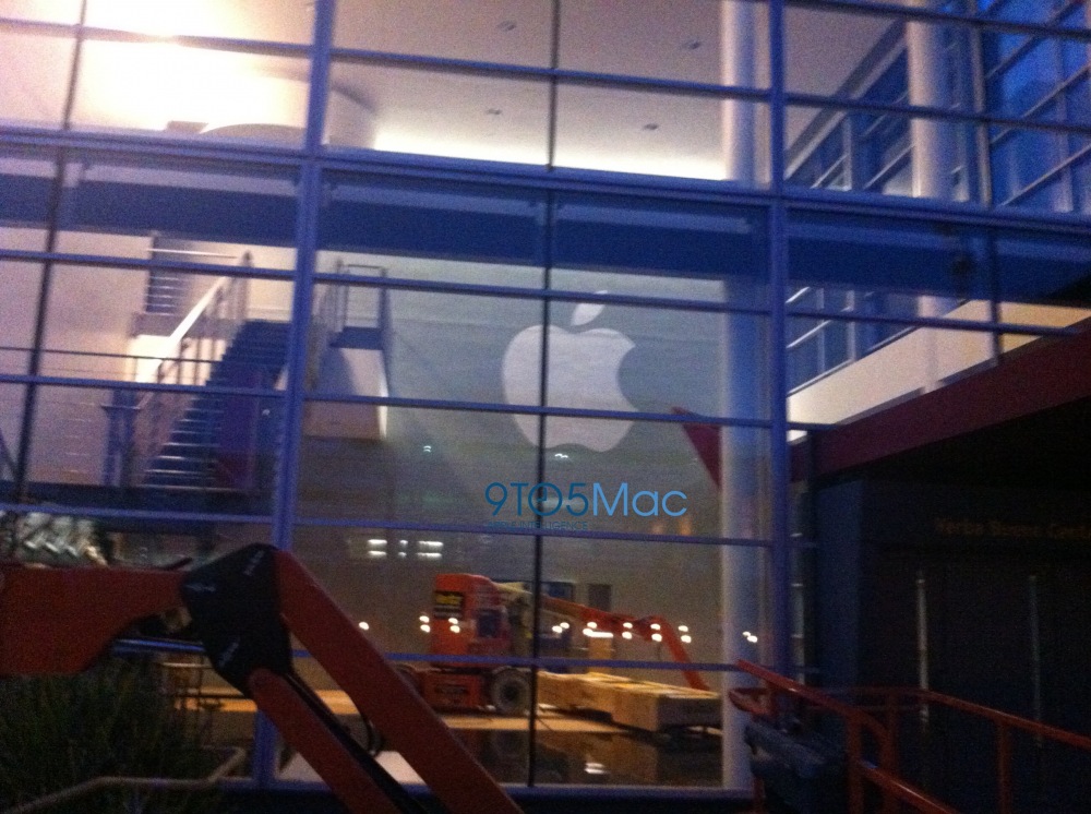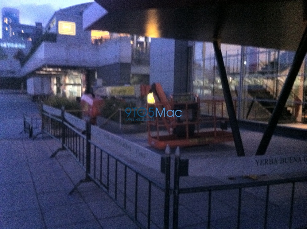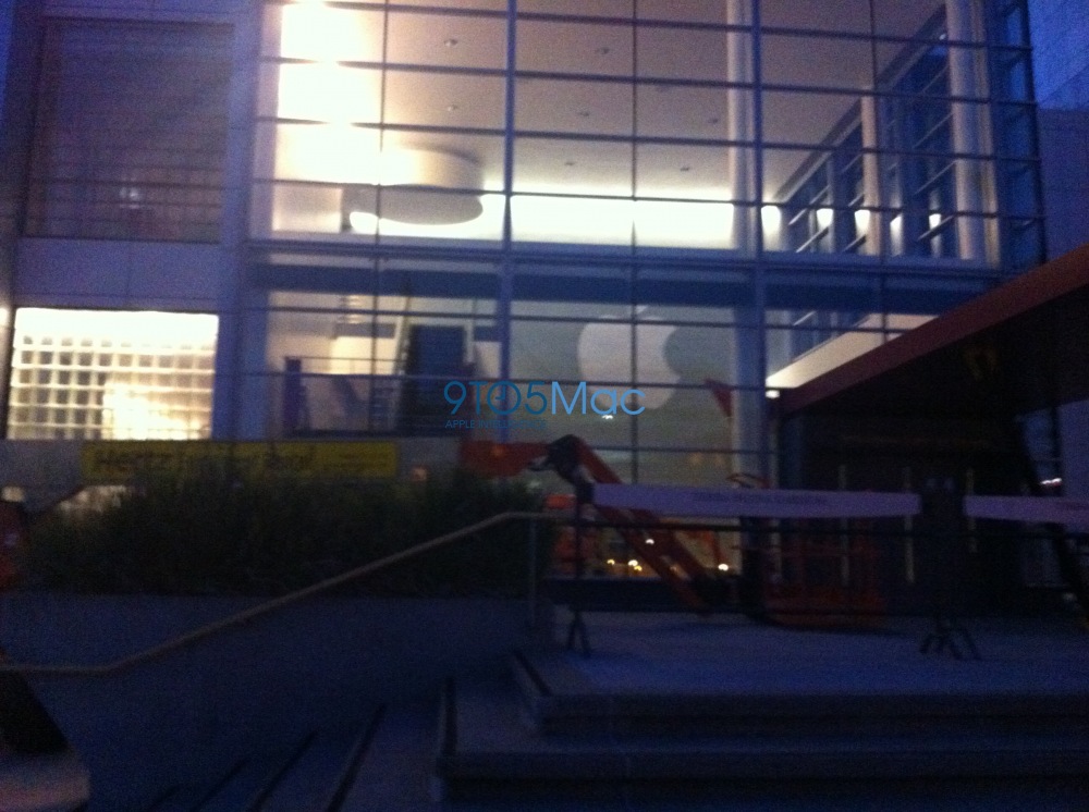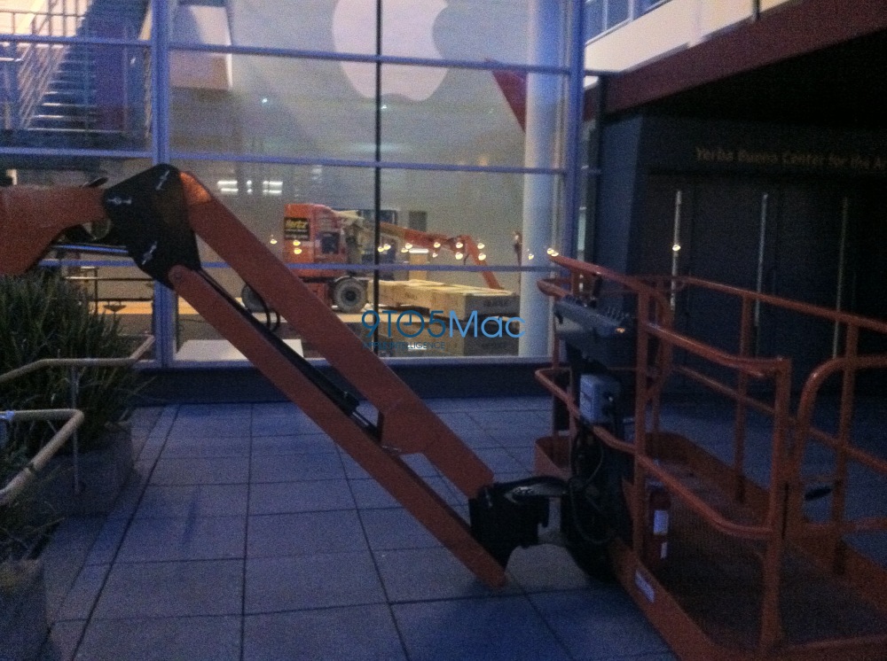 Thanks to reader Andrew Stern, we’ve got some photos that indicate Apple is already preparing San Francisco’s Yerba Buena Center for its September 12th iPhone 5 media event. While it appears that the exterior banners will be going up tomorrow (based on Cherry Pickers being prepped outside the front), Apple has already put up its logos inside of Yerba Buena.